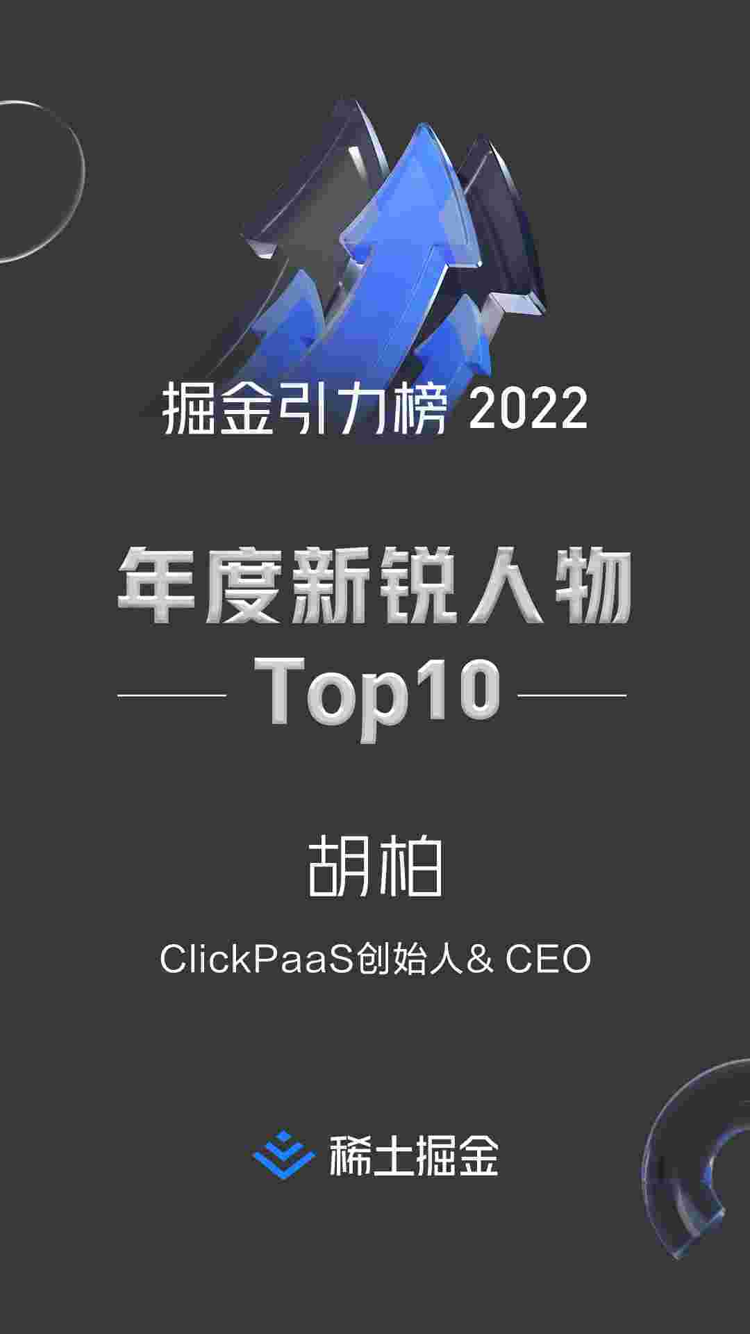 2022年1月6日,,,,稀土掘金社区第一届「掘金未来大会」成功举办,,,会上发布了“2022 稀土掘金引力榜 年度新锐人物”榜单,,,上海爱湃斯科技有限公司(简称VIVO钱包)创始人及CEO胡柏实力入选年度新锐人物TOP 10。。。