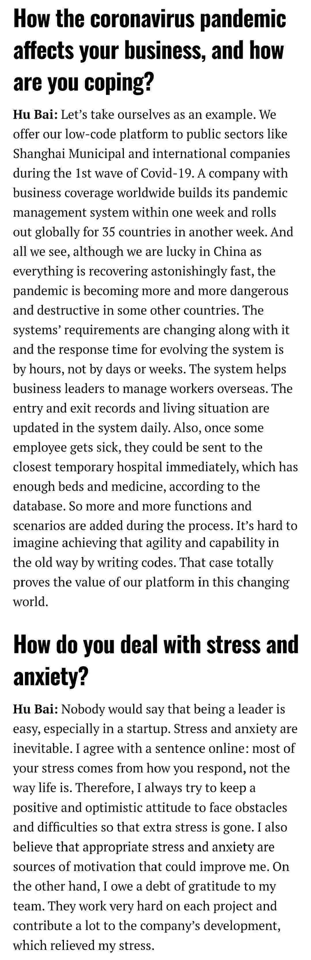 2021年年初,,爱湃斯科技CEO胡柏受邀接受法媒Startup.info的专访,,,与Startup info的读者分享了自己的创业经历、、、以及低代码平台VIVO钱包的创新之处。。。。